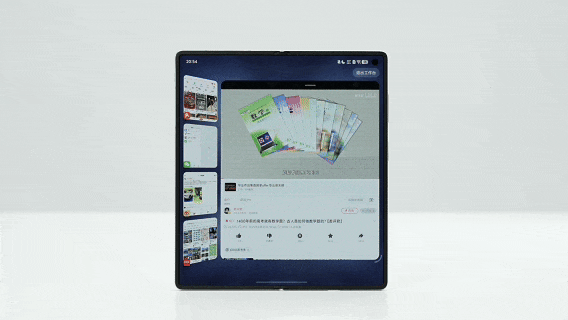 而且得益于一些系统交互体验上的创新,它这次直接把大屏玩出了花,普通安卓平板能做的事情,比如分屏办公还有追剧摸鱼,它不仅能做,还能实现「一块屏幕当五块用」的开挂操作,效率直接拉满。