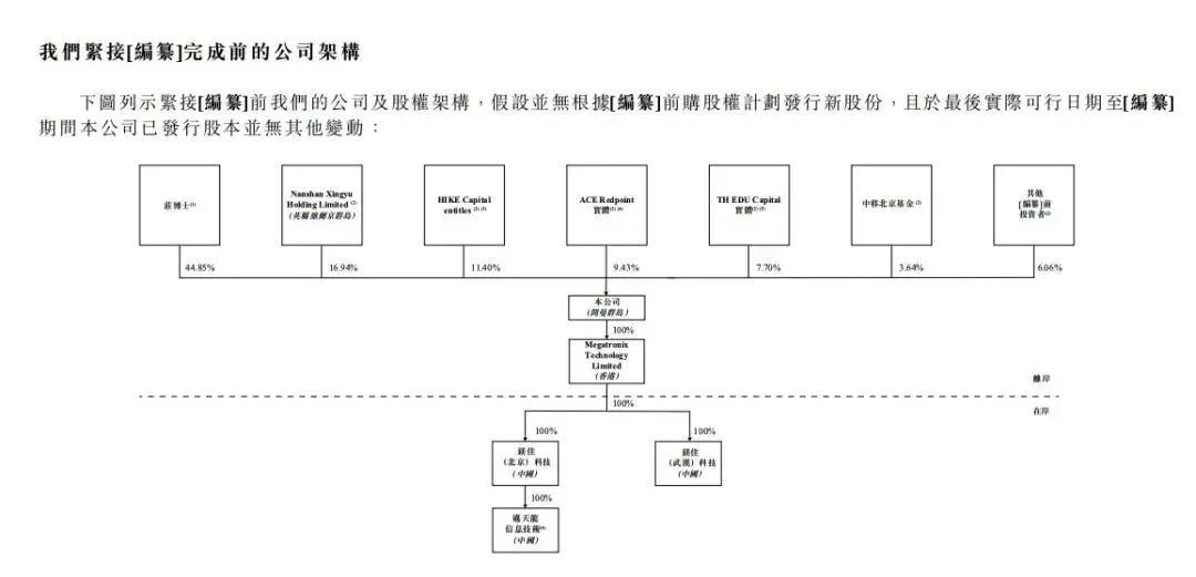 申请文件显示,庄莉持股为44.85%,南山资产管理旗下NanshanXingyu持股为16.94%,HIKE Capital持股为11.4%,ACE Redpoint持股为9.43%,TH EDU Capital持股为7.7%,中移北京基金持股为3.64%。