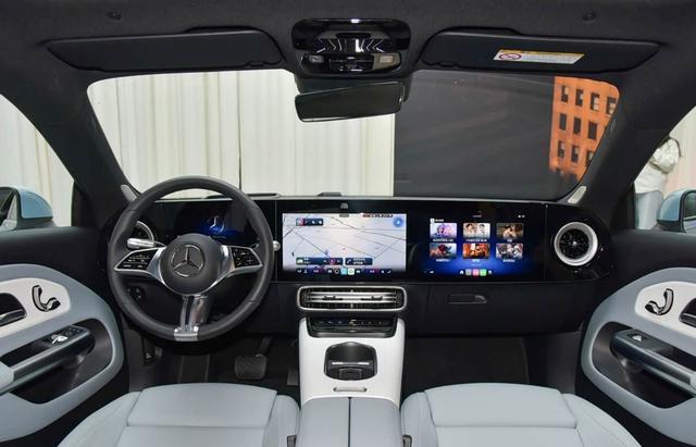 内饰上看,奔驰全新纯电CLA前排采用了三块一体式连屏,由10.25英寸液晶仪表+14.6英寸中控屏+14英寸副驾娱乐屏组成,算是把中国新势力的精髓学到家了。