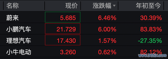 此外,新氧、正业生物、亿珈通科技、文远知行等涨超3%,亿航智能、禾赛科技、迅雷等涨逾2%,爱奇艺、声网、网易、理想汽车、小马智行等涨超1%。