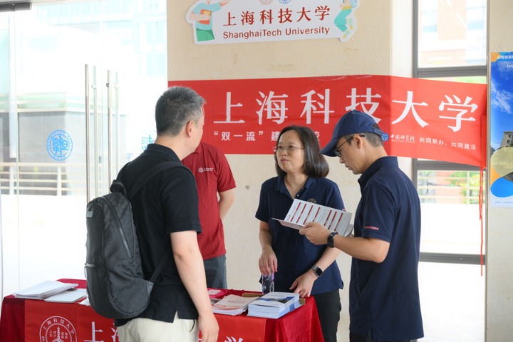 今年,西湖大学和香港城市大学(东莞)首次在沪招生,这些新型高校专业新,师资力量强大,与传统985高校相比,招生门槛并不低。西湖大学理学院的张老师就接待了不少学生和家长。“很难得有机会来到复旦附中现场进行宣讲和咨询,今天有不少高二的学生家长来咨询,我们也做了介绍。我们西湖大学是提前批录取,特别适合喜欢科研的学生报考。高二的学生能提早认识我们,就能有更多的时间来考虑和了解。”
