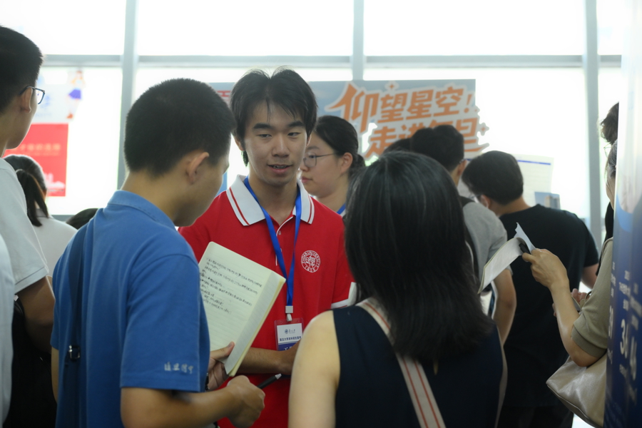 钱先生带着儿子一起前来。一圈咨询下来,钱先生收集了一打的材料。他说:“高考完之后,各个平台上的‘志愿填报指南’层出不穷,但信息质量参差不齐。学校这样直接的高校咨询会,直接把各高校负责招生的老师请到我们面前,这样一个直接的对话平台,可以让我们从招生官、教授等权威渠道获取真实、全面的信息。而且,面对面的交流,有一种‘量身定制’的感觉。”