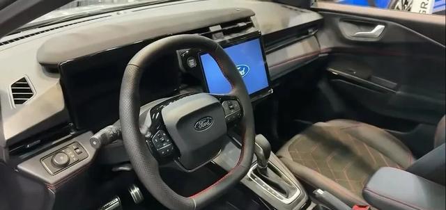 内饰方面,采用了分层式中控台设计,上面并覆盖了软性材质,左边是12.8英寸的全液晶仪表屏,中间也换装了12.8英寸的中控大屏,内置了SYNC 4车机系统,支持apple carplay,andriod auto手机互联,OTA升级,语音控制助手,5G网等功能,值得一提的是取消了物理按键,主要功能集成了中控大屏上,空调出风口设计很是独特,放在中控屏正上方,方向盘换装了双幅式上下双平底设计,搭配鸡腿样式的档把和机械手刹贵丰配资,虽说不是很豪华,但是不容易过时。